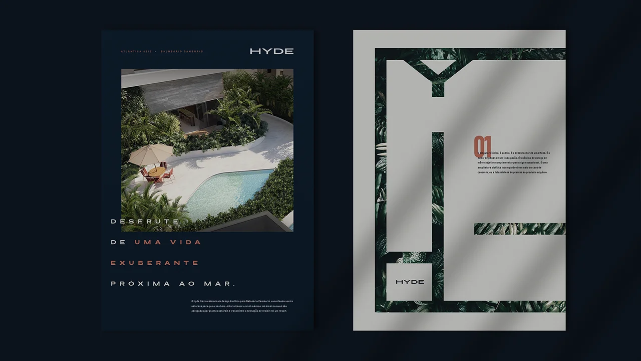 Para esse lançamento da Embraed, criamos uma identidade única, que se destaca dos projetos anteriores da construtora. Com base no conceito desenvolvido pela nossa equipe - "Sua natureza particular próxima ao mar." - e inspirados nas diretrizes do design biofílico trazido pelo renomado arquiteto e paisagista Benedito Abbud, realizamos uma produção audiovisual que transmitissem a sensação de estar imerso na natureza do Hyde.