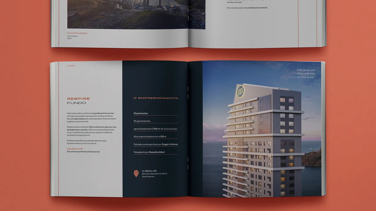 A identidade visual foi cuidadosamente desenvolvida, sendo elegante e com cores marcantes, para se comunicar com o público-alvo de alto padrão que busca residir no edifício. Criamos toda a estratégia de lançamento e os materiais necessários tanto para o empreendimento quanto para a construtora. Nosso objetivo foi garantir que cada elemento transmitisse a essência única do projeto e cativasse o interesse dos potenciais clientes, estabelecendo uma conexão emocional com a proposta do Hyde.